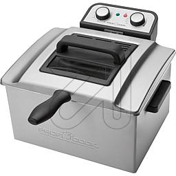 mit direkt im Fett befindlicher Heizspirale zur schnellen Erhitzung und zum geruchsarmen Frittieren, Gehäuse, Deckel mit Sichtfenster, Fettbehälter und Heizspirale aus Edelstahl, mit 2 kleinen und einem großen Frittierkorb für unterschiedliches Frittiergut, Fettbehälter und Heizspirale zur leichten Reinigung herausnehmbar, stufenlos regelbarem Thermostat von 130°C bis 190°C und 30-Minuten-Timer, 2 Kontrollleuchten für Temperatur und Betrieb, Abtropfvorrichtung, wärmeisolierten Tragegriffen, Geruchs- und Fettdunstfilter, Überhitzungsschutz und Kabelaufwicklung, Inhalt 5l Öl/Fett